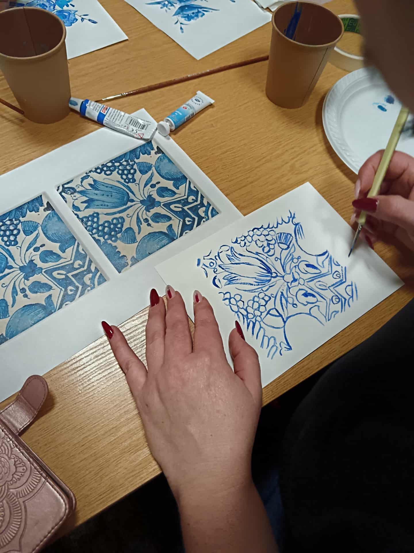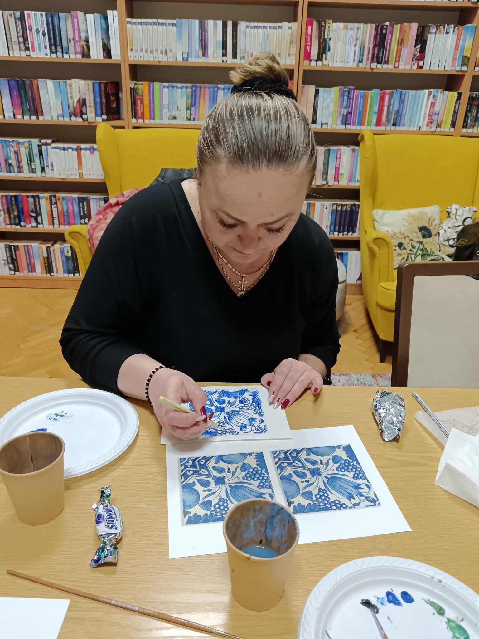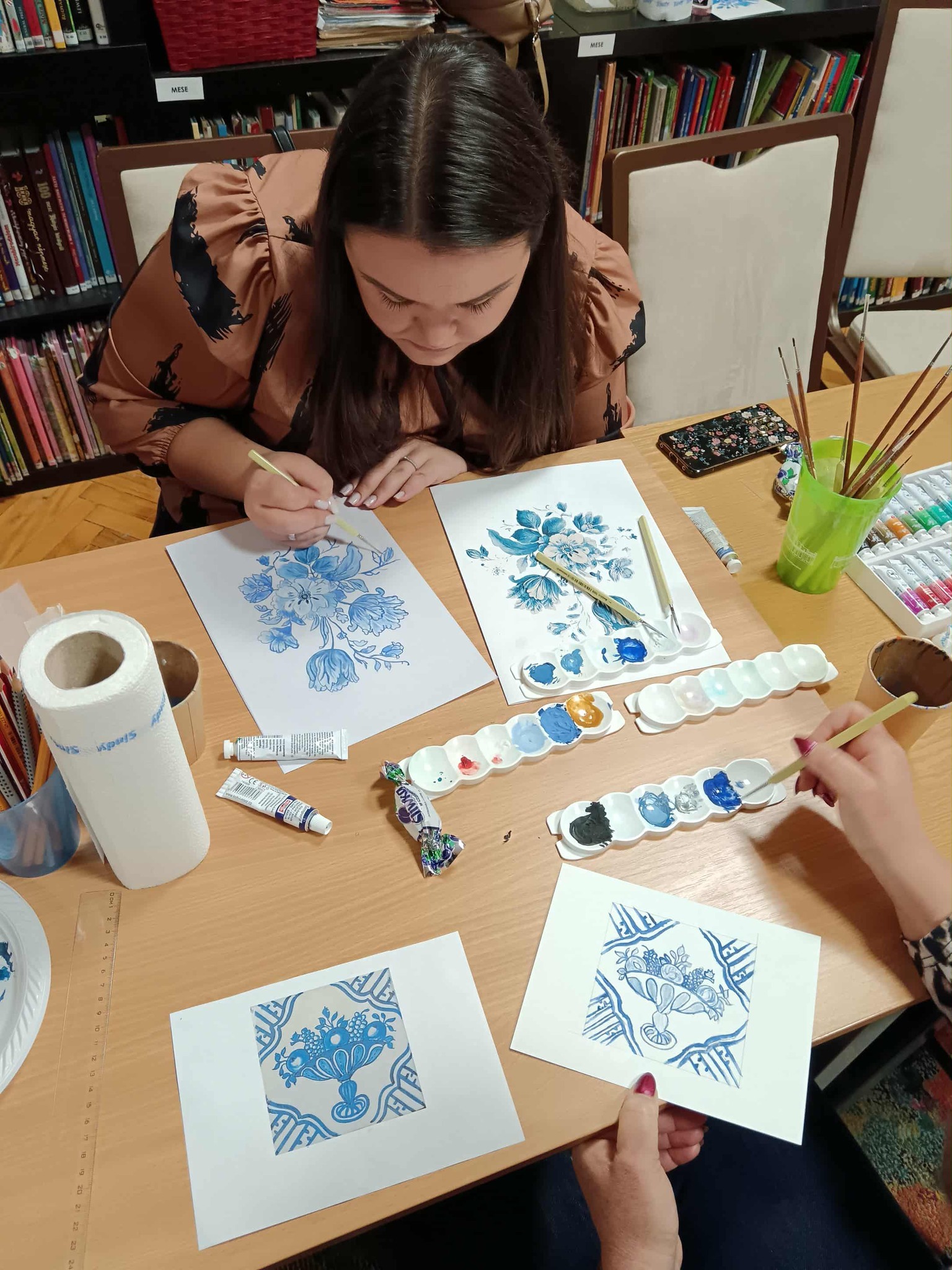 Másfél éve indult útjára a motívumfestészet a könyvtárban. A 2025-ös évben festettünk olasz, spanyol, török és legutóbb németalföldi mintákat.