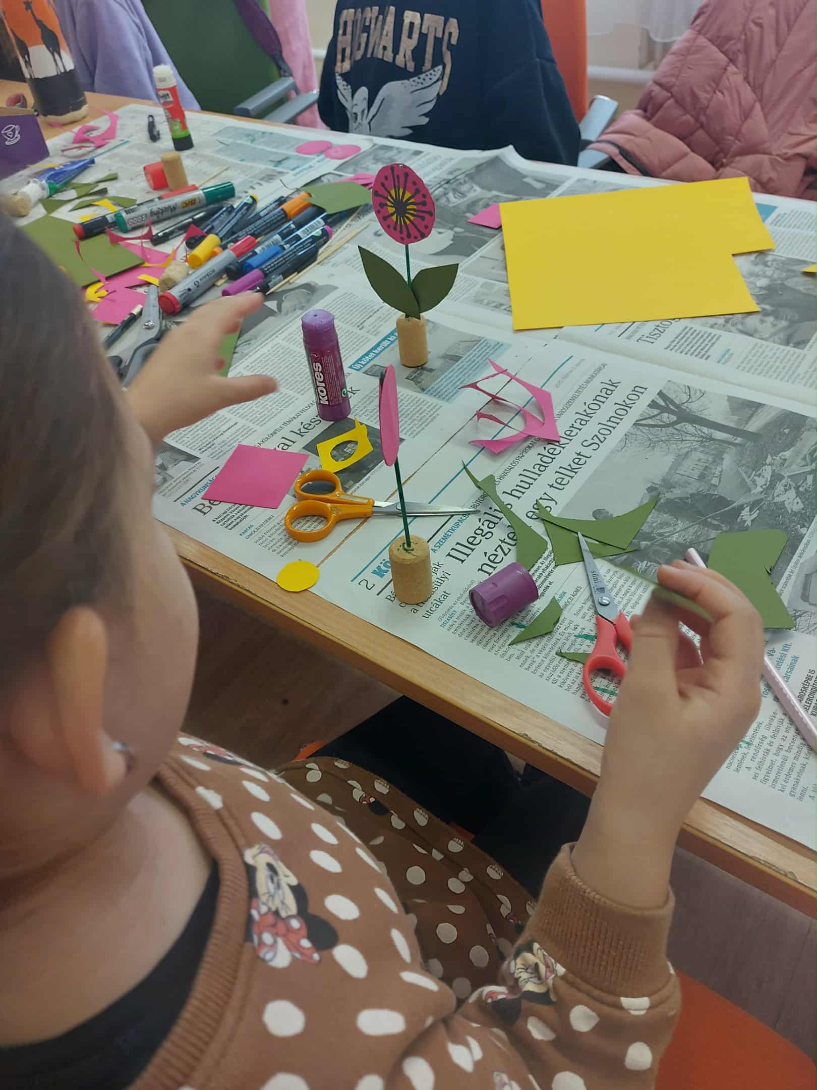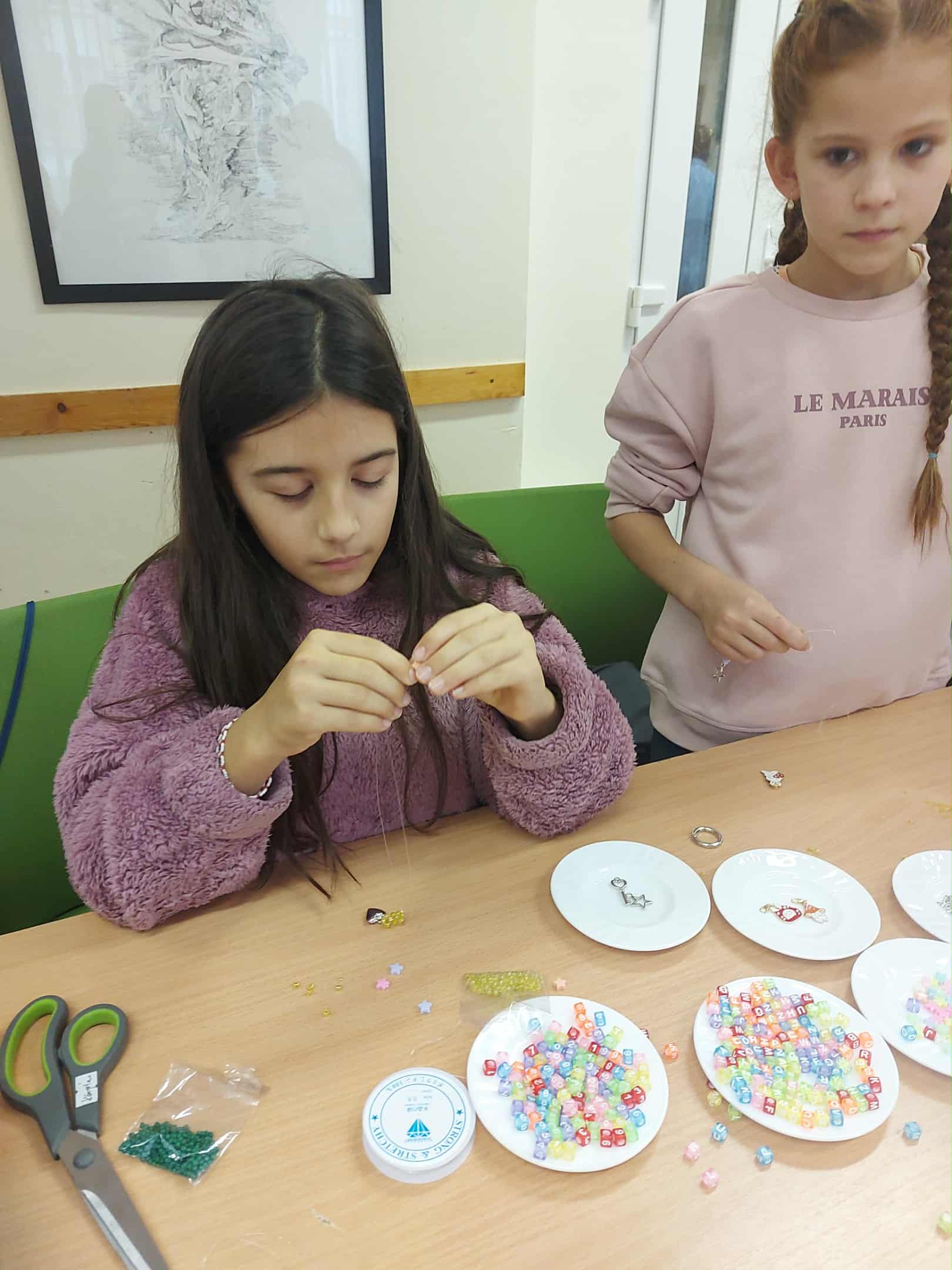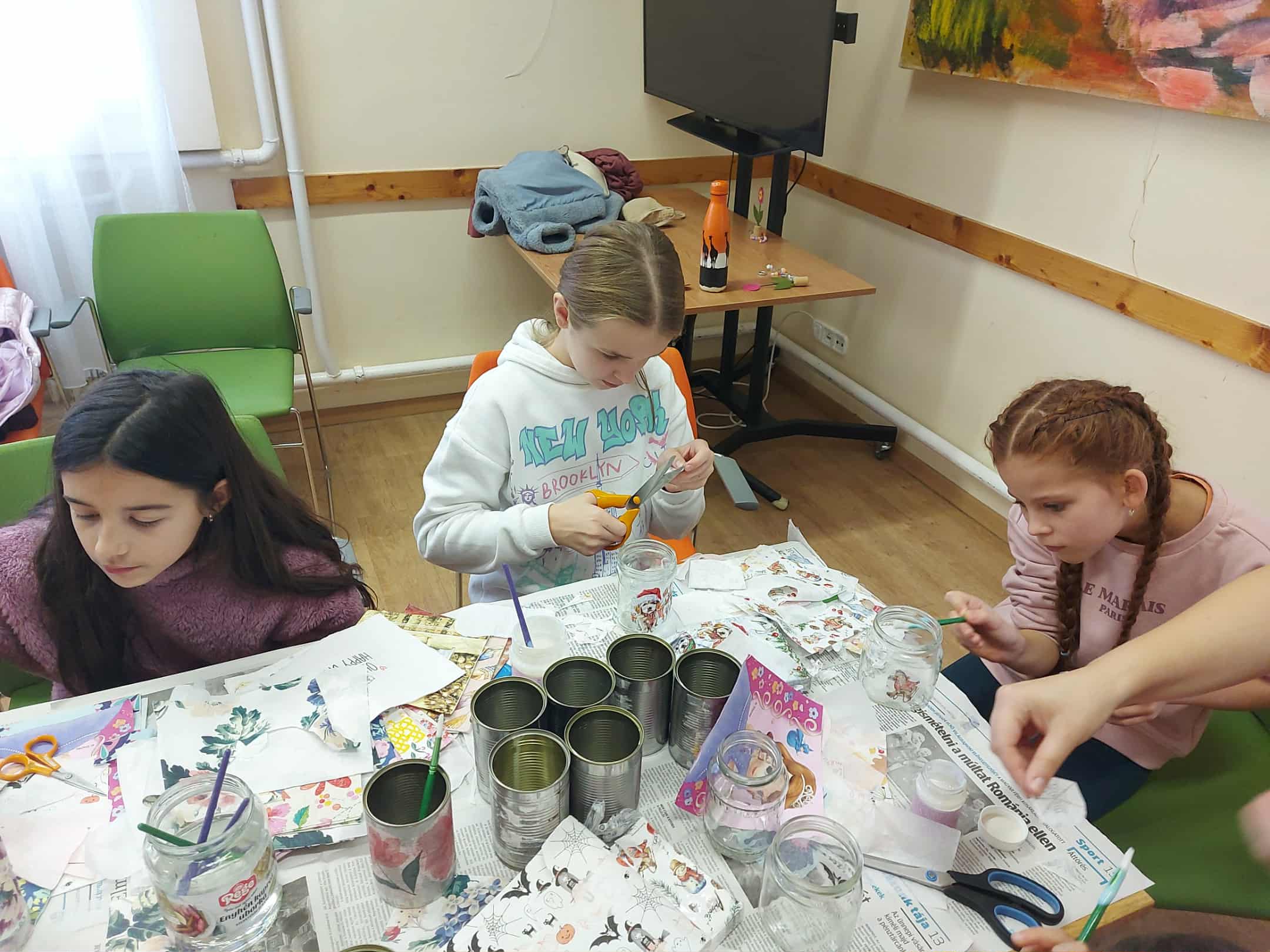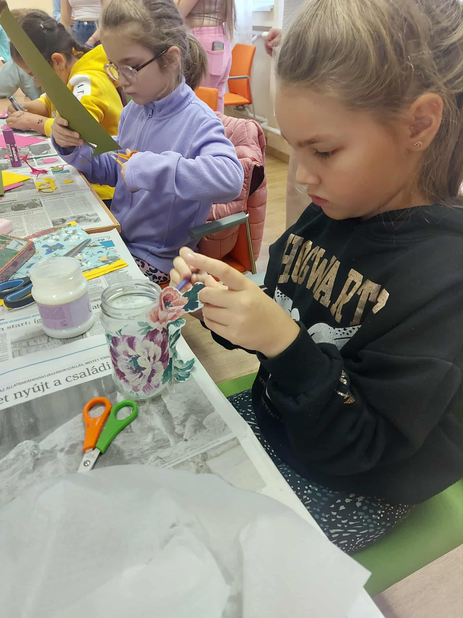 3 féle tárgyat készíthettek el az érdeklődő kislányok: mécsestartó dekupázs technikával, papír virág, kulcstartó gyöngyből.