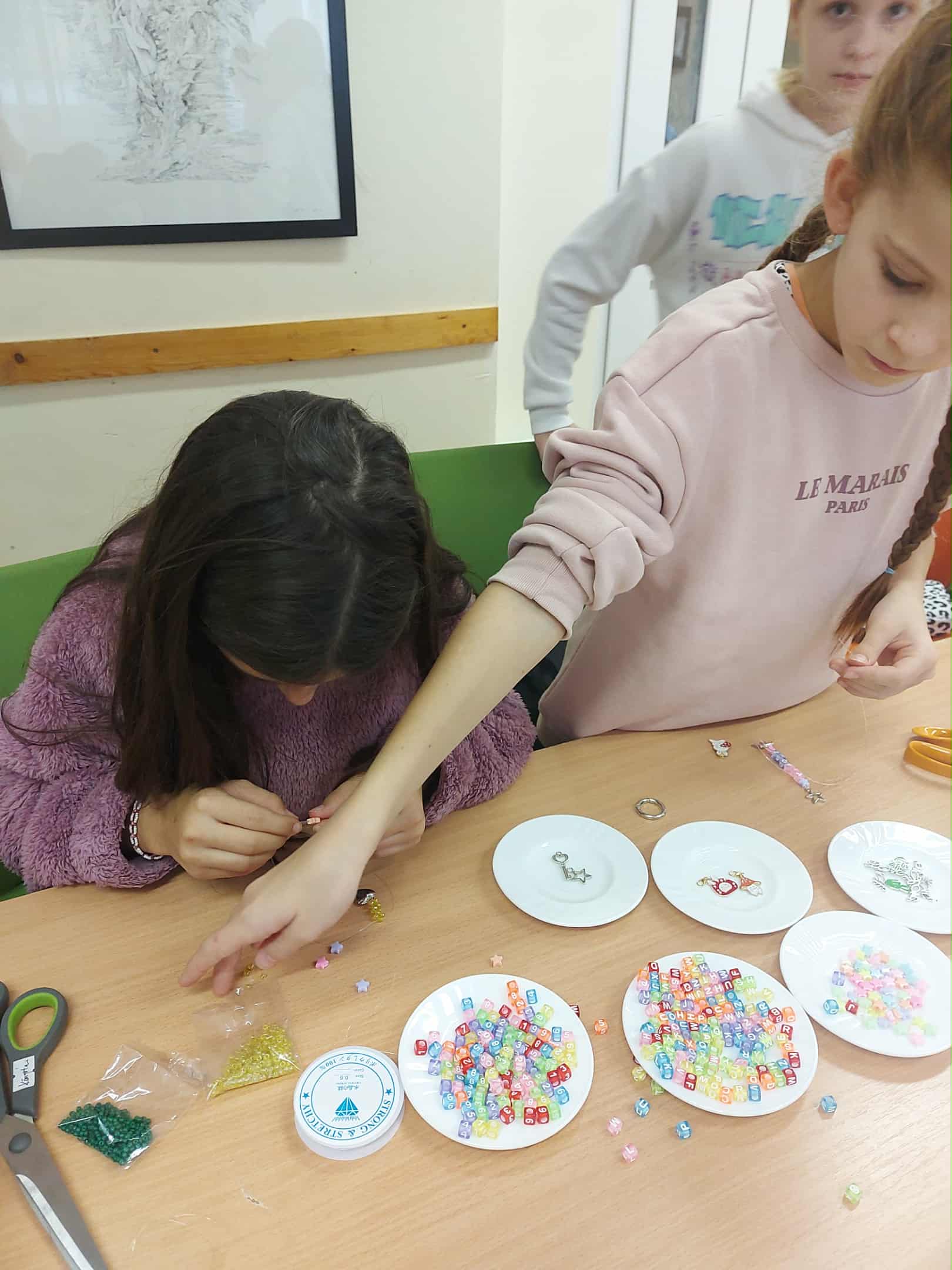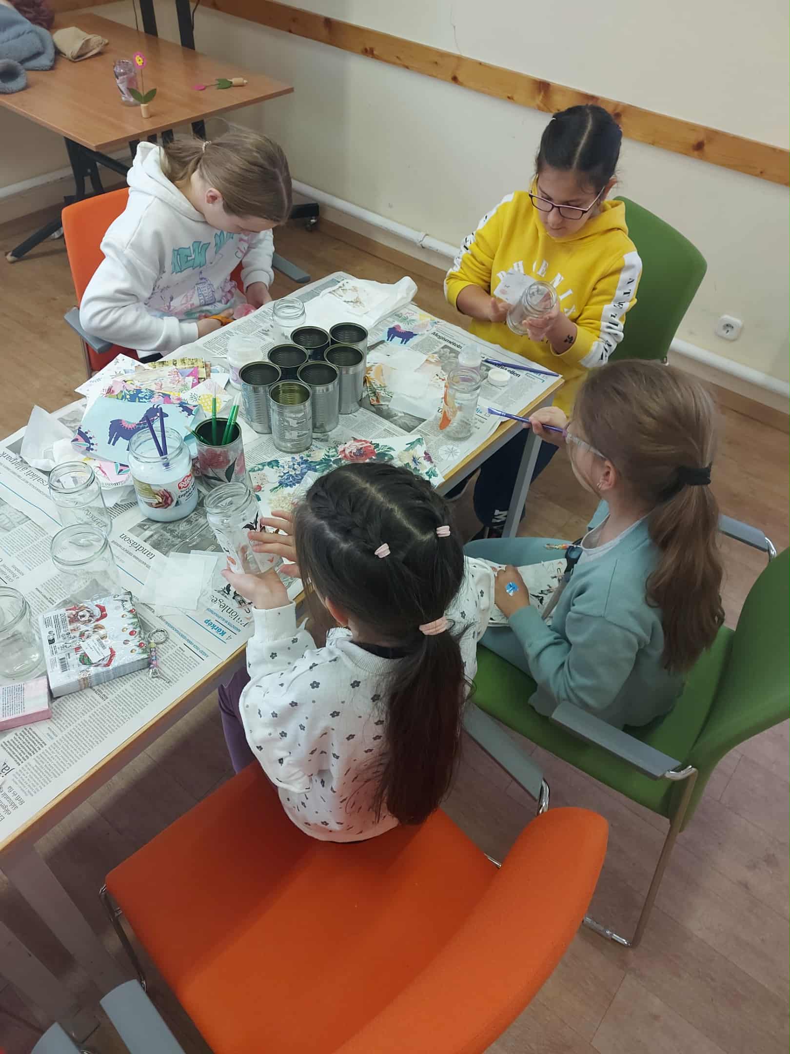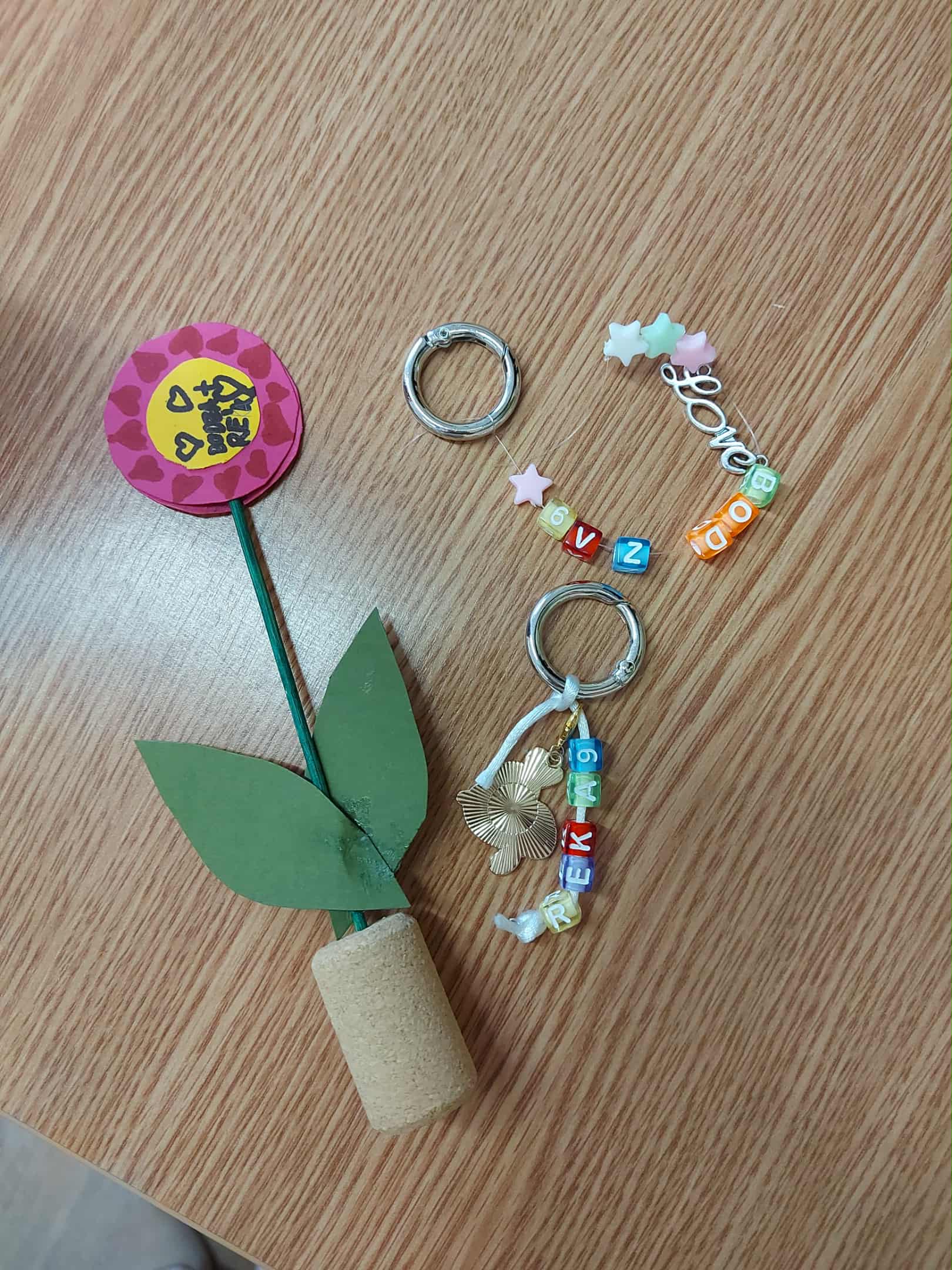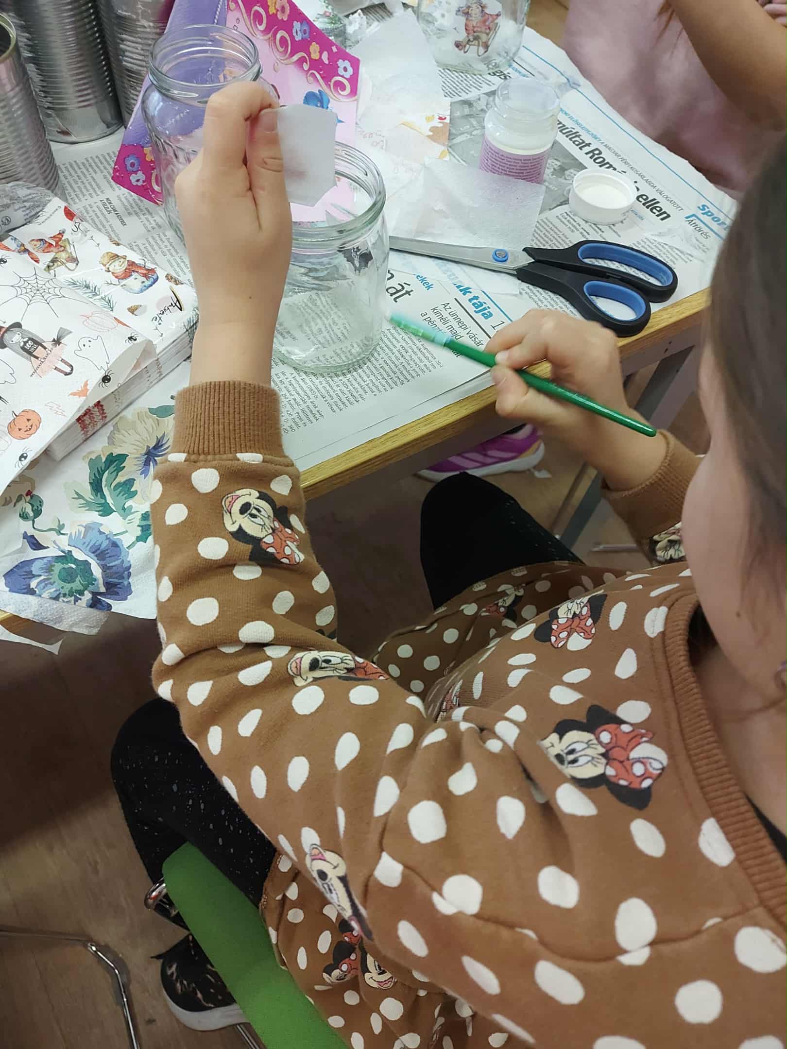 3 féle tárgyat készíthettek el az érdeklődő kislányok: mécsestartó dekupázs technikával, papír virág, kulcstartó gyöngyből.