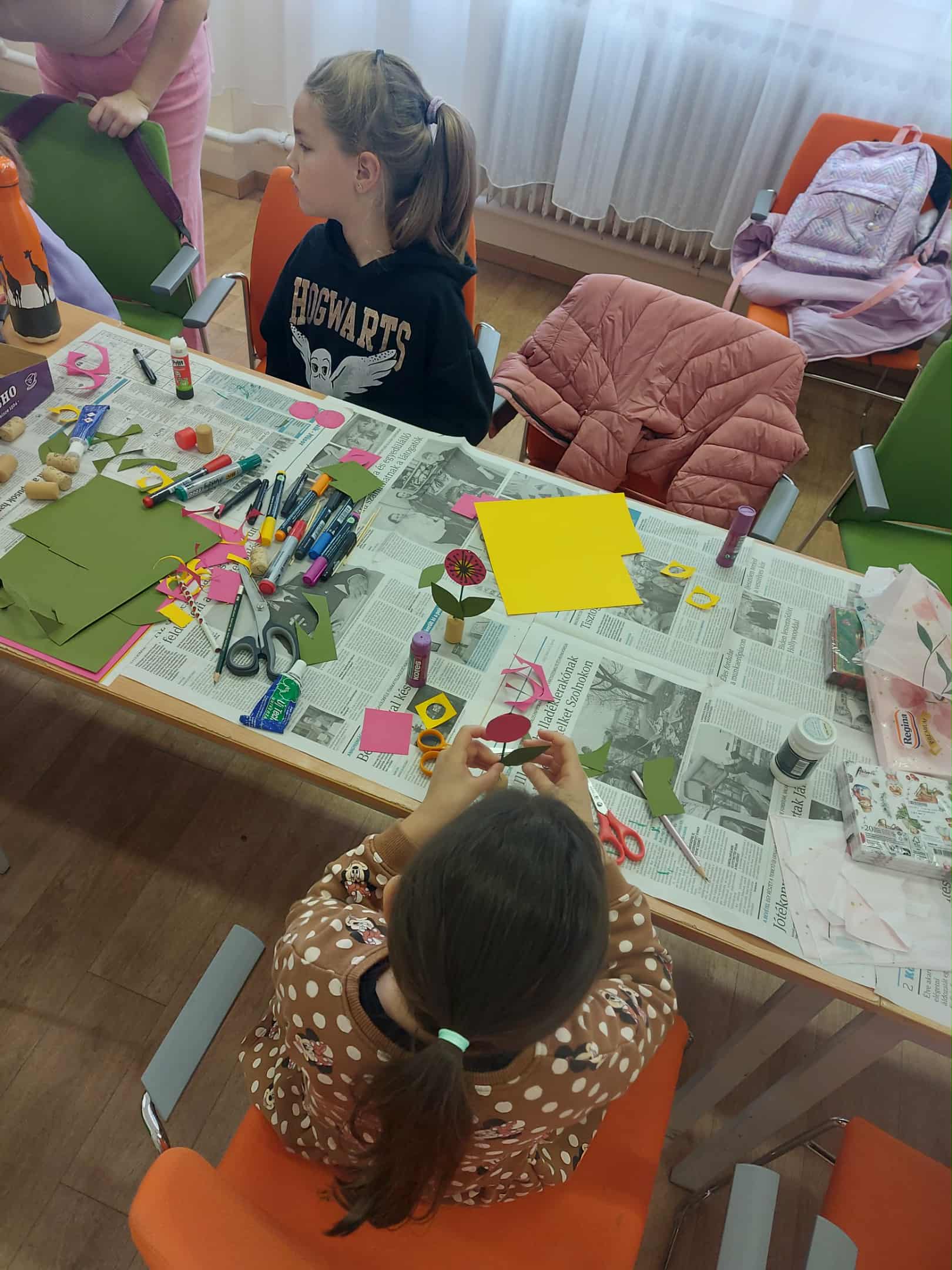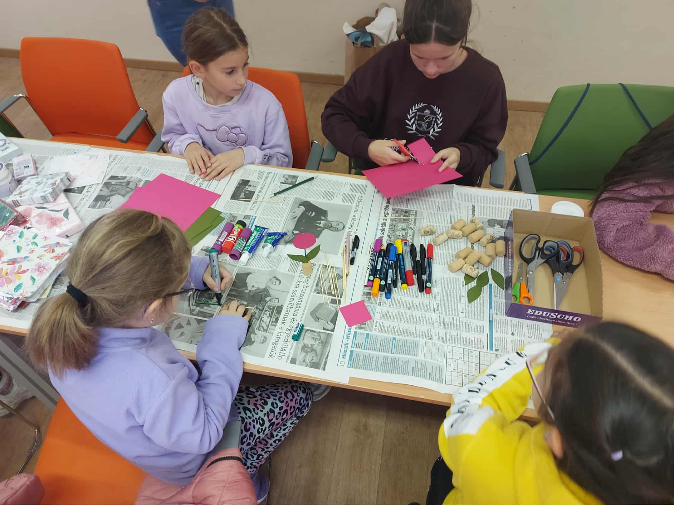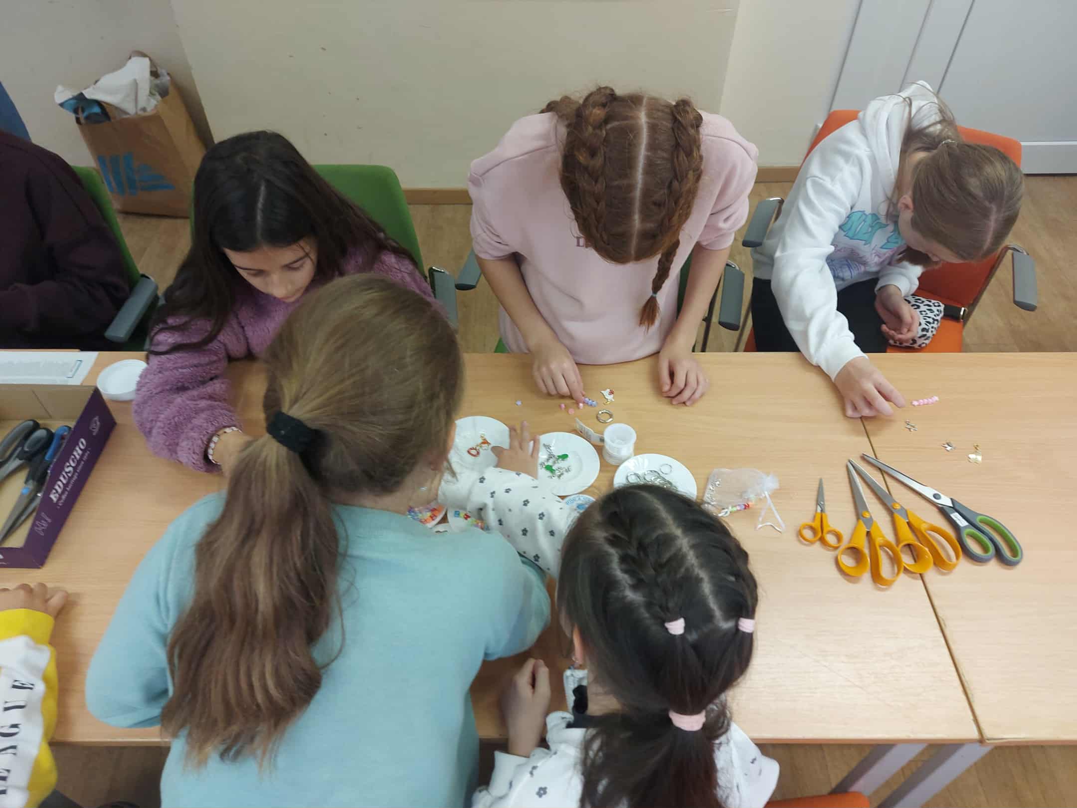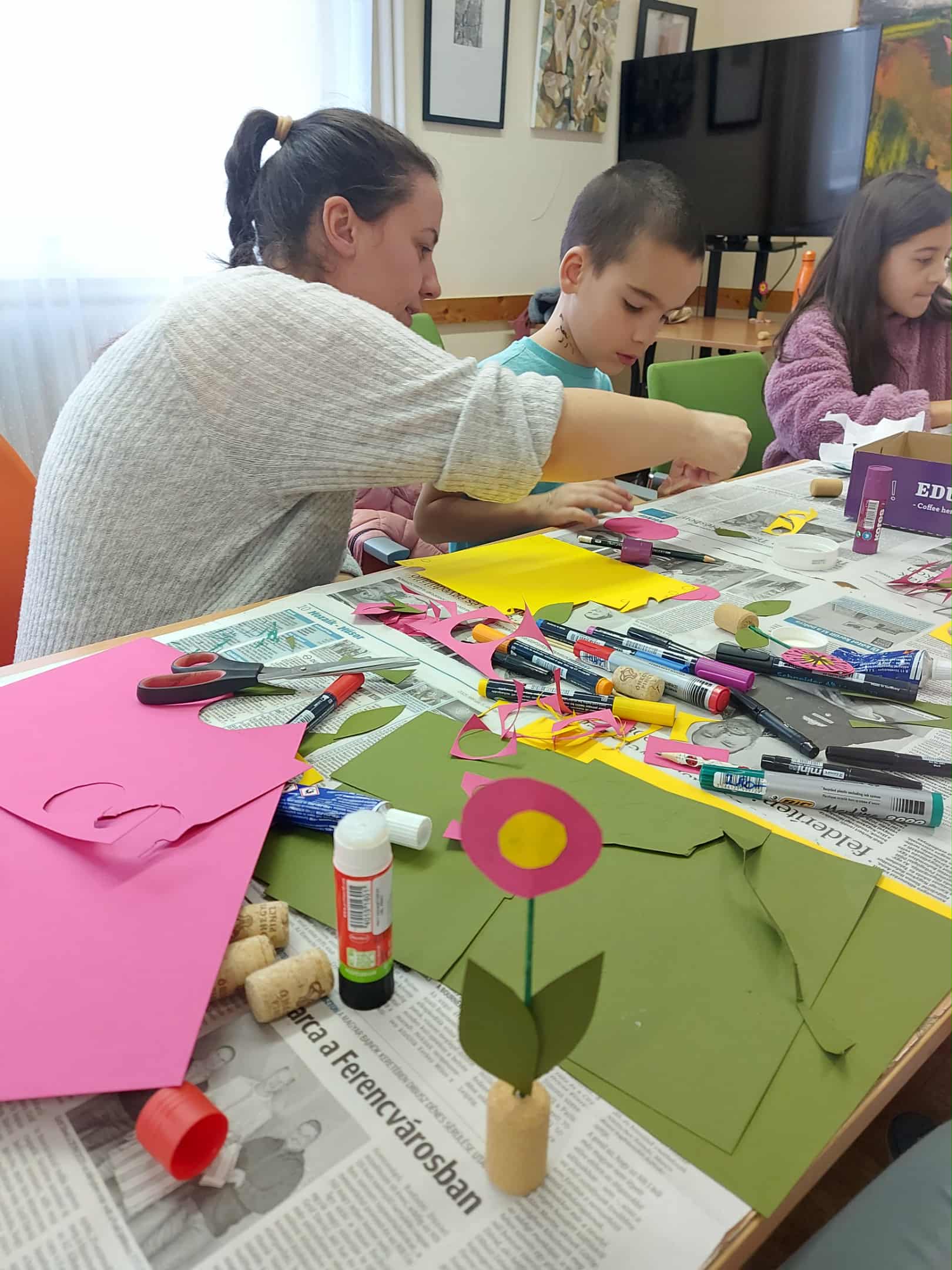 3 féle tárgyat készíthettek el az érdeklődő kislányok: mécsestartó dekupázs technikával, papír virág, kulcstartó gyöngyből.