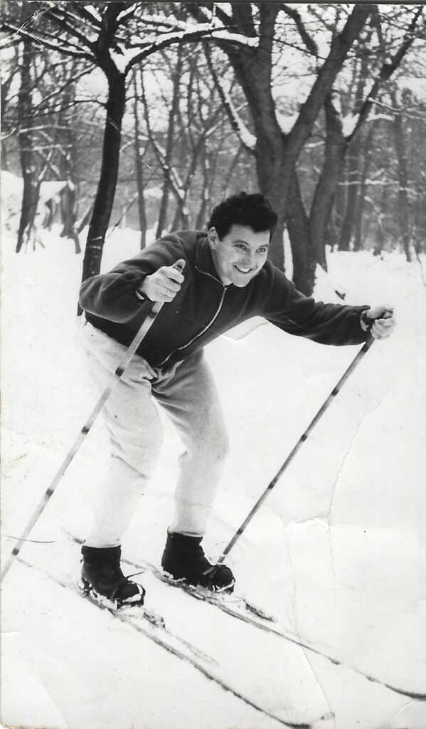 A képen Mészáros Tivadar látható síelés közben.