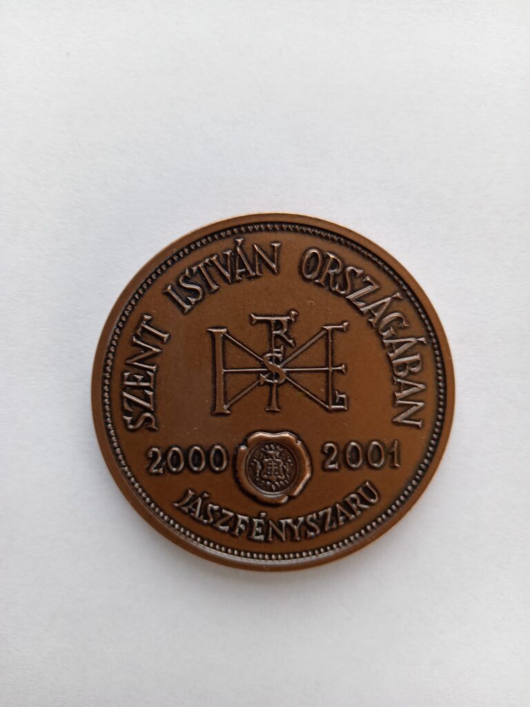 Szent István király bronz érem hátlapja Jászfényszarun. (2001.)